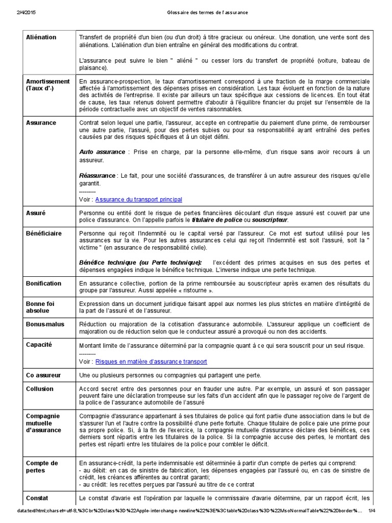 Glossaire Des Termes De L Assurance Pdf Pdf Assurance Risque
