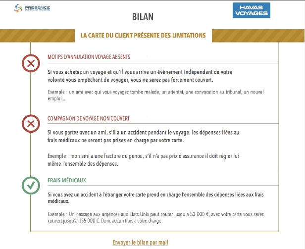Lassurance voyage néchappe pas à la règle de la franchise ce montant fixe qui reste invariablement à la charge de lassuré quels que soient le prix du séjour et les frais dannulation. Garanties identiques à lassurance multirisque à condition que vous ayez réglé votre voyage au moyen dune carte bancaire haut de gamme comportant une garantie annulation.